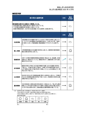 更新日:2025/09/26| Category:商工会情報 あしぎん経済概況9月号の公表について 0 facebook 0 Twitter 0 Google+ (株)あしぎん総合研究所より、あしぎん経済概況9月号が公表されました。 詳細につきましては、別添PDFをご覧ください。 関連資料 » あしぎん経済概況9月号(R7)
